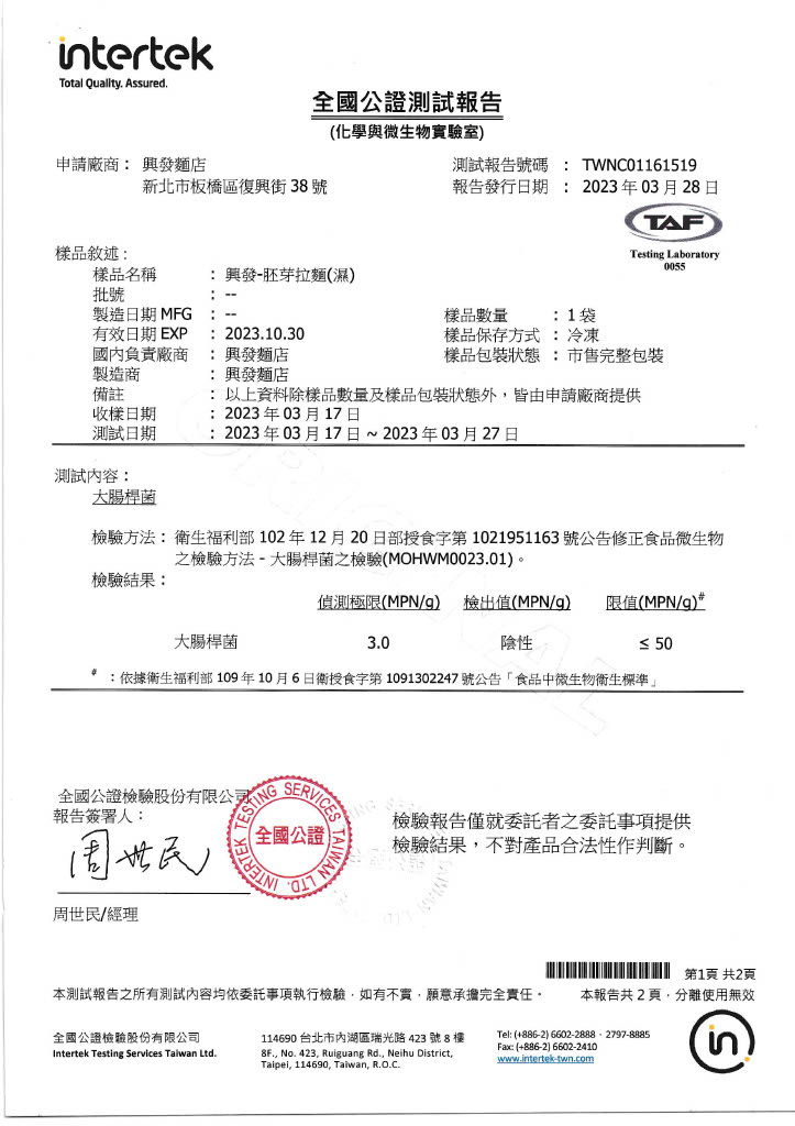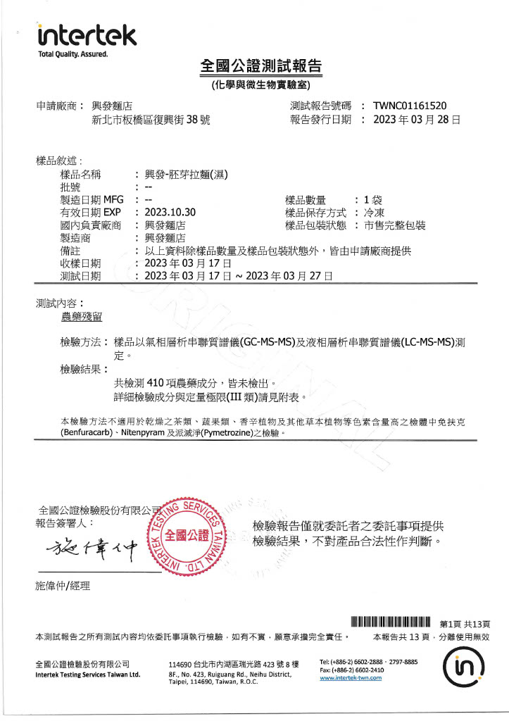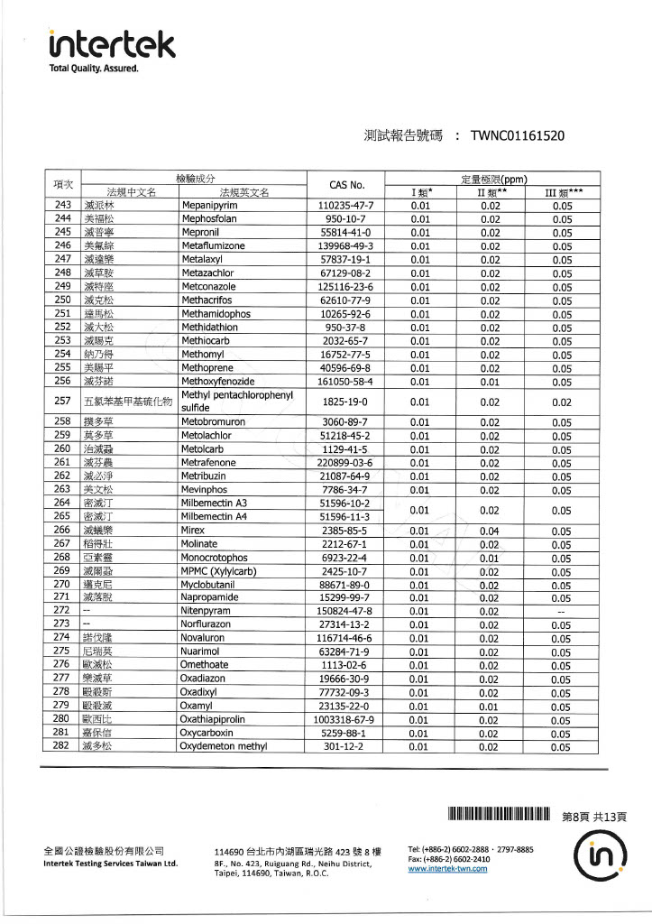 | 全國公證「大腸桿菌及農藥殘留410項」檢驗 | |