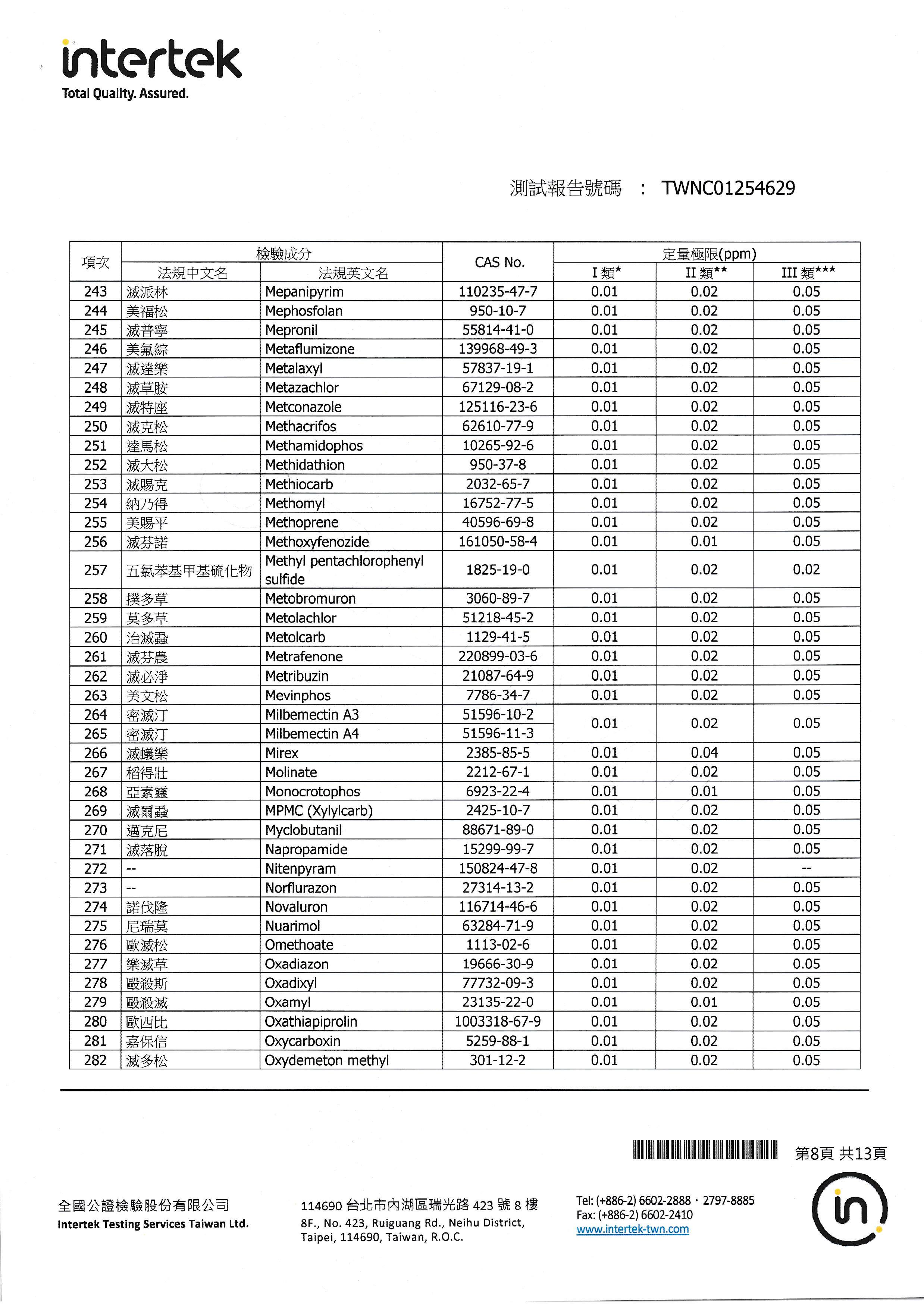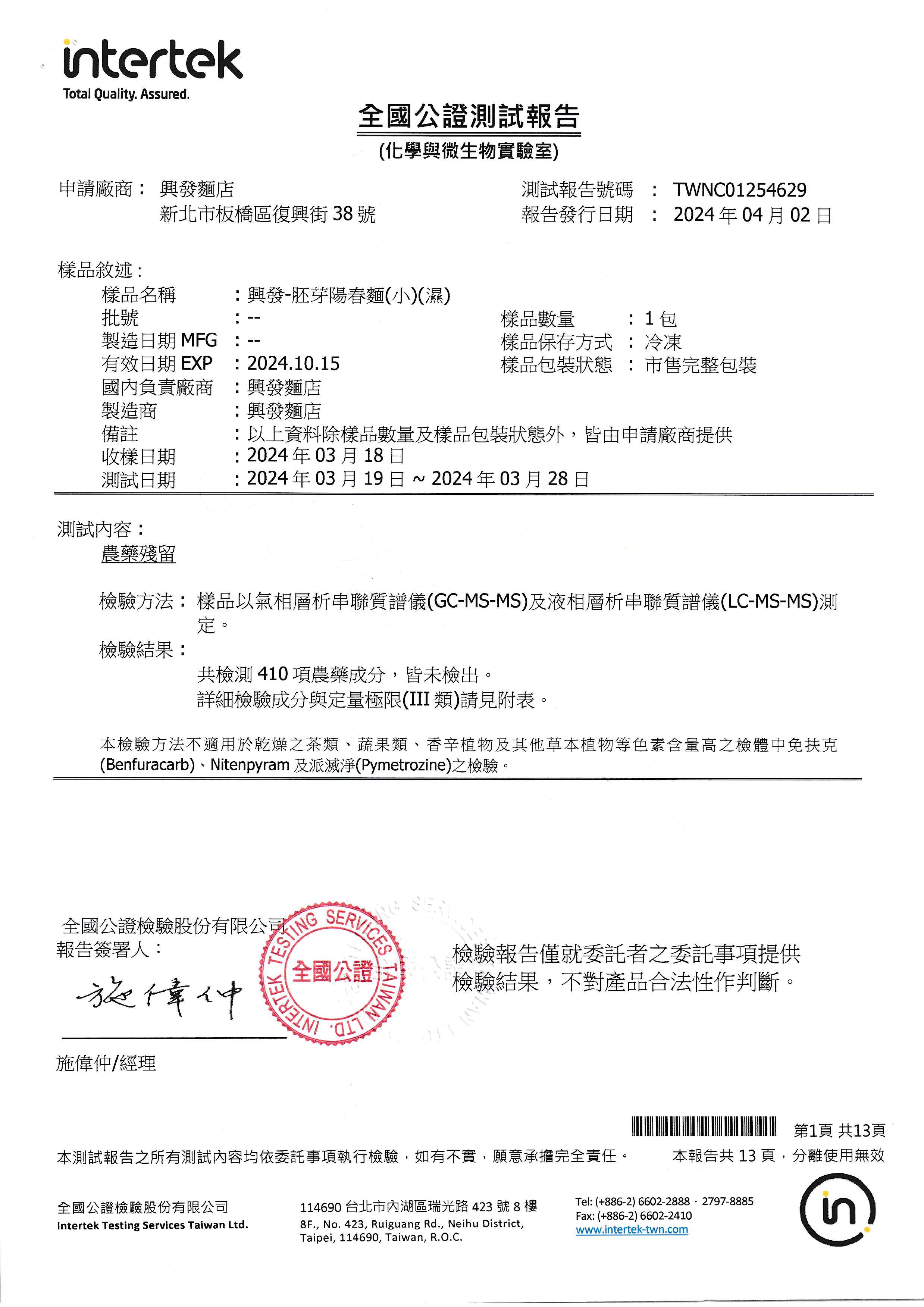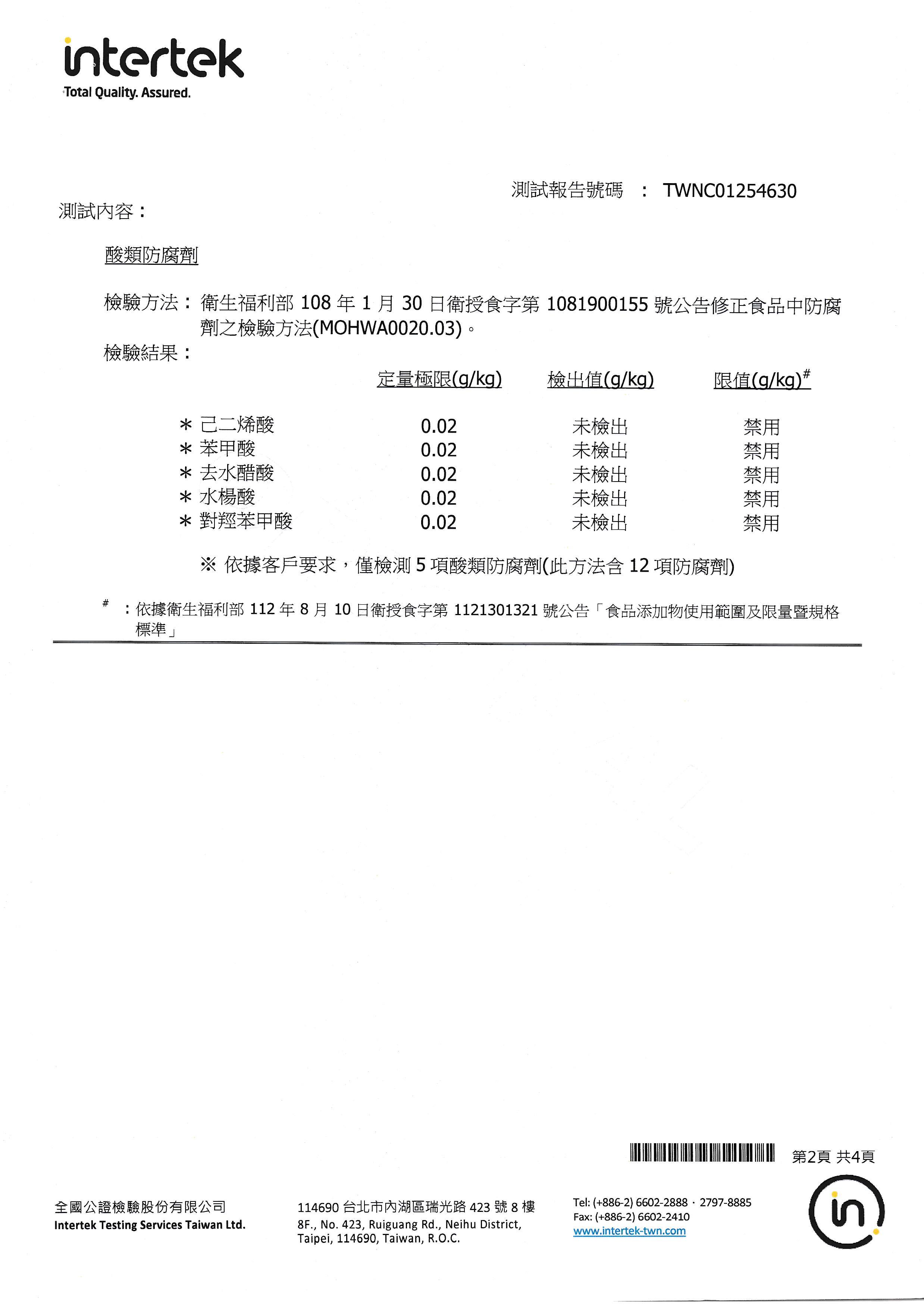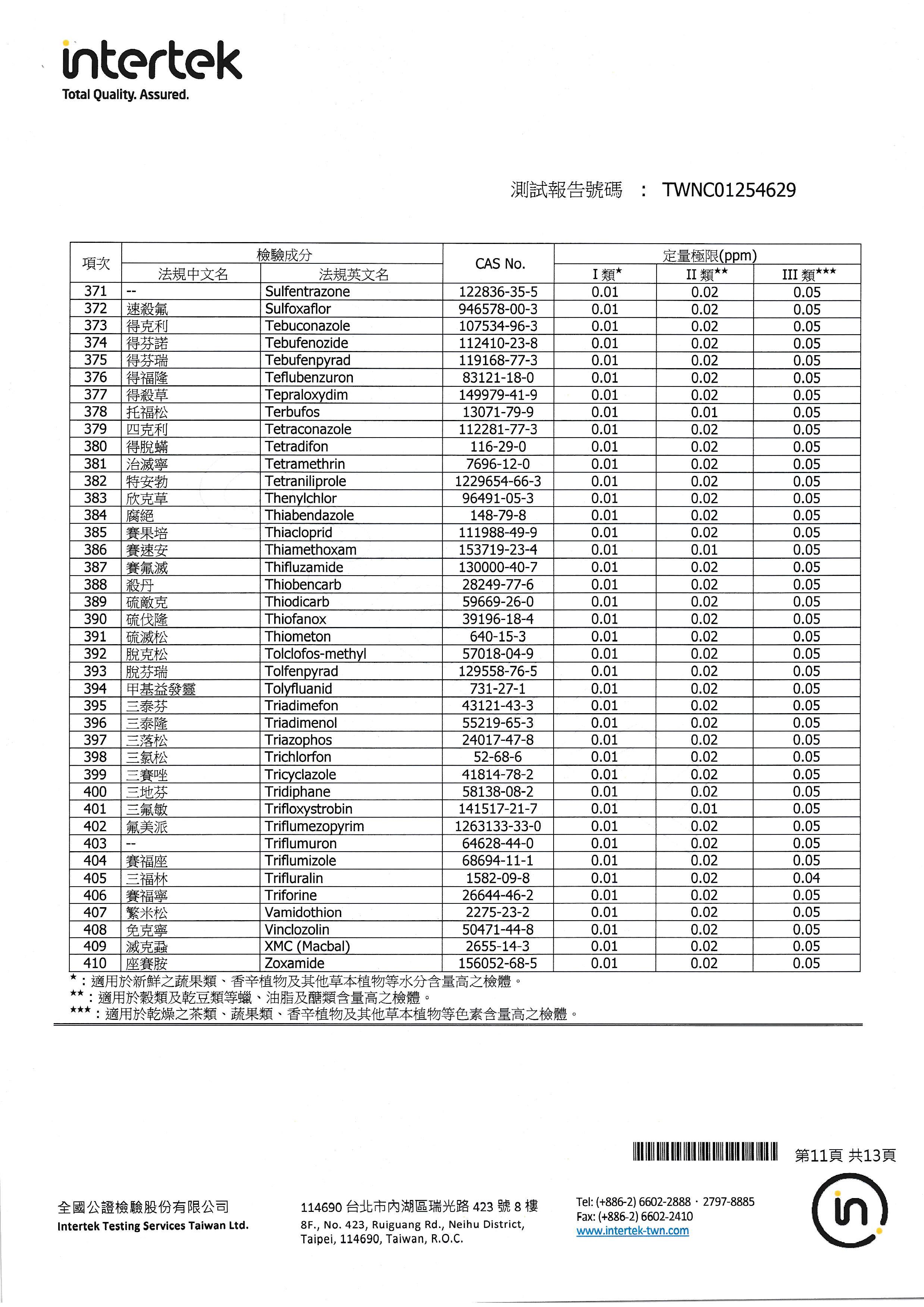 | 全國公證「防腐劑、大腸桿菌及農藥殘留410項」檢驗 | |